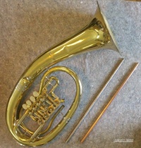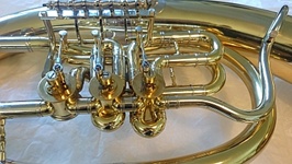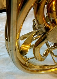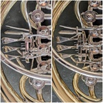 Heute muss mal ein Vorher-/Nachher-Foto sein. Spada J-Horn - Überholung mit Bürsten und Vergolden.