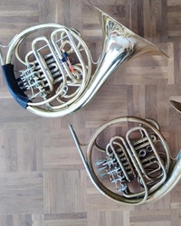 Kruspe - kompensiertes Doppelhorn. Entlackt/Becher innen Mattlack.