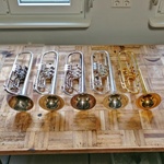 Alexander-Tage in meiner Werkstatt. Das Alex 101/103 ist wieder spielbereit, die ältere Alexander-Trompete glänzt nach einer Generalüberholung und einigen Umbauten im neuen silbernen und goldenen Gewand.