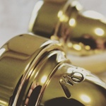 Mal was anderes: Saxofon-Mundstück und Spanner aufpoliert und vergoldet.